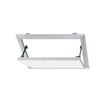 Trappe pour l'enregistrement des installations formée par un cadre en aluminium et une plaque en Pladur hydrofuge, sans vis apparentes et pré-imprimée en blanc.