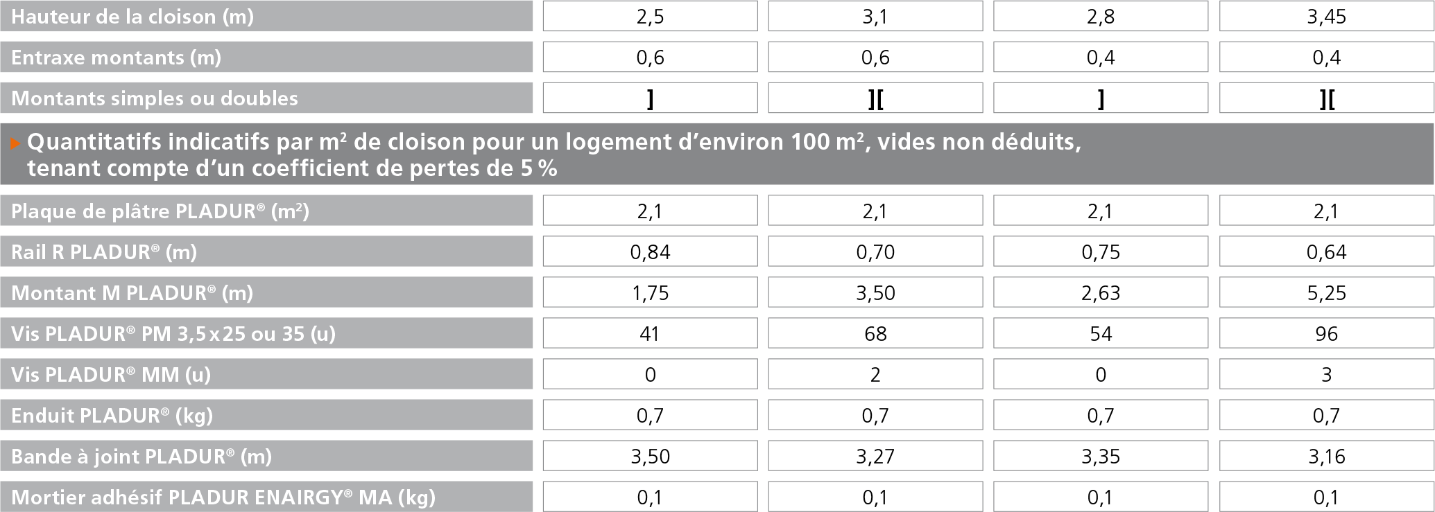 - Les plaques PLADUR® MAGNA 18 et MAGNA 25, de 900 mm de largeur, sont de haute dureté (type I selon la norme EN 520). Elles conviennent donc aux zones particulièrement exposées aux chocs. - Choisir l’ossature en fonction de la hauteur entre étages et du parement à mettre en oeuvre :