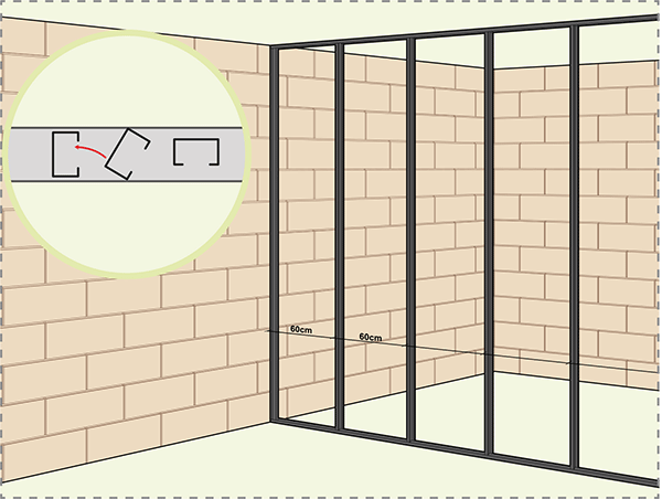- alternative 2 : cheviller le montant de départ dans le parement de la première cloison