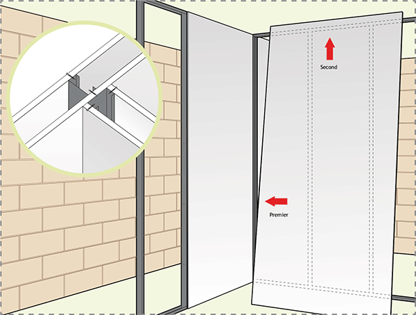 - alternative 1 : visser le parement de la première cloison dans le montant de départ