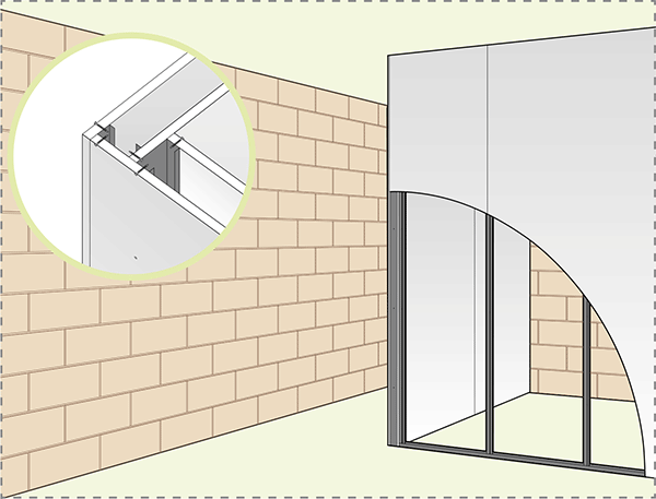 - Enfoncer les plaques à fond d’huisserie et les visser dans les deux profilés montant et rail.