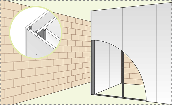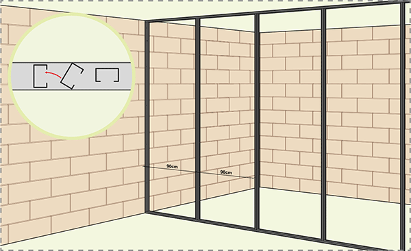 - Enfoncer les plaques à fond d’huisserie et les visser dans les deux profilés montant et rail.