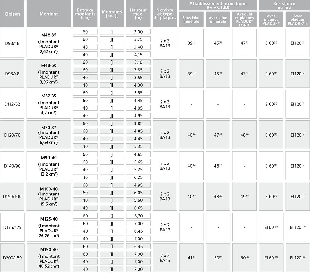 Les PV d’essais acoustiques justifiant les performances des cloisons PLADUR® datent de moins de 10 ans et sont réalisés par un laboratoire français accrédité.
