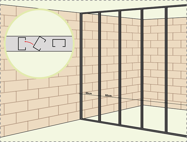 - alternative 1 : visser le parement de la première cloison dans le montant