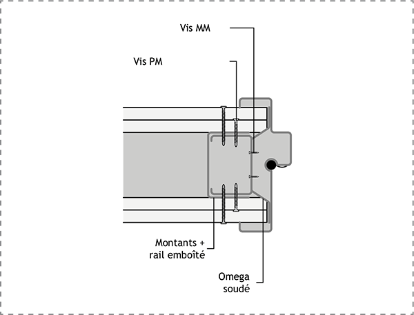 - Visser un montant sur les Ω soudés puis coiffer le montant par un rail.